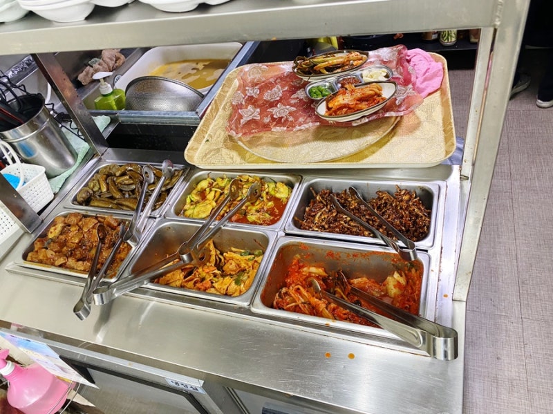 바로 삼겹살과 사장님의 손맛이 담긴 반찬이 기가 막힌 곳이죠.