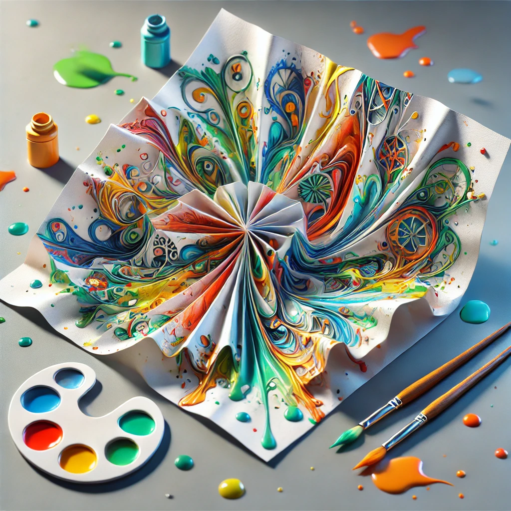 종이 접기와 물감을 조합해 독특한 작품을 만들어 보세요. 종이를 접고 물감을 묻혀 펼치면 예측할 수 없는 무늬와 색감이 표현됩니다.