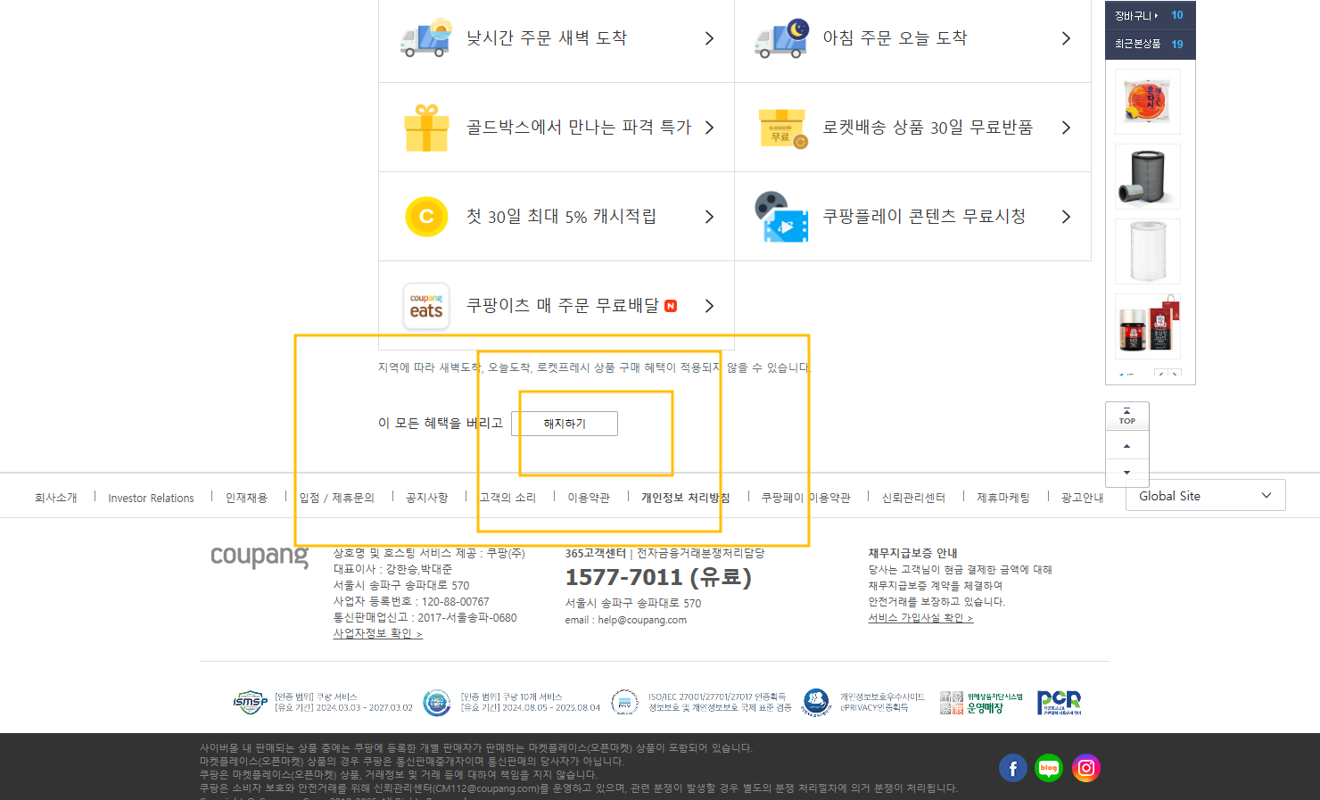 - 와우 멤버십 메뉴 클릭: ‘해지하기’ 버튼을 찾기