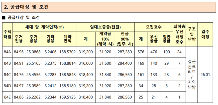 - 2026년 1월 입주 예정이며, 계약 체결 및 잔금 납부 완료 후 입주할 수 있습니다.