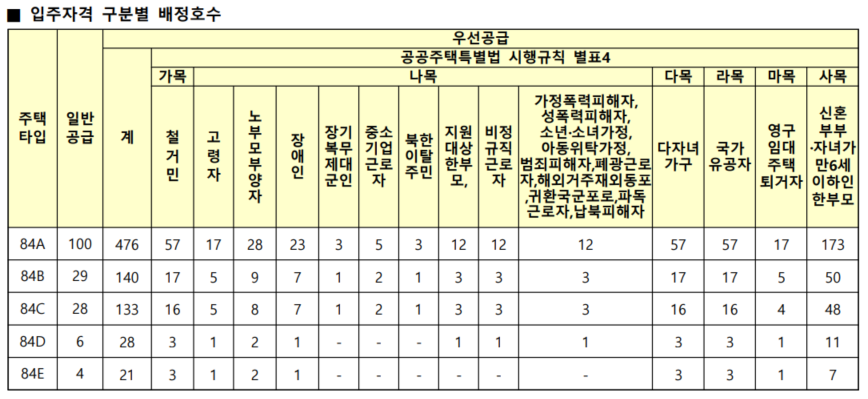 - 국가유공자, 장애인, 신혼부부, 다자녀 가구, 한부모 가족 등